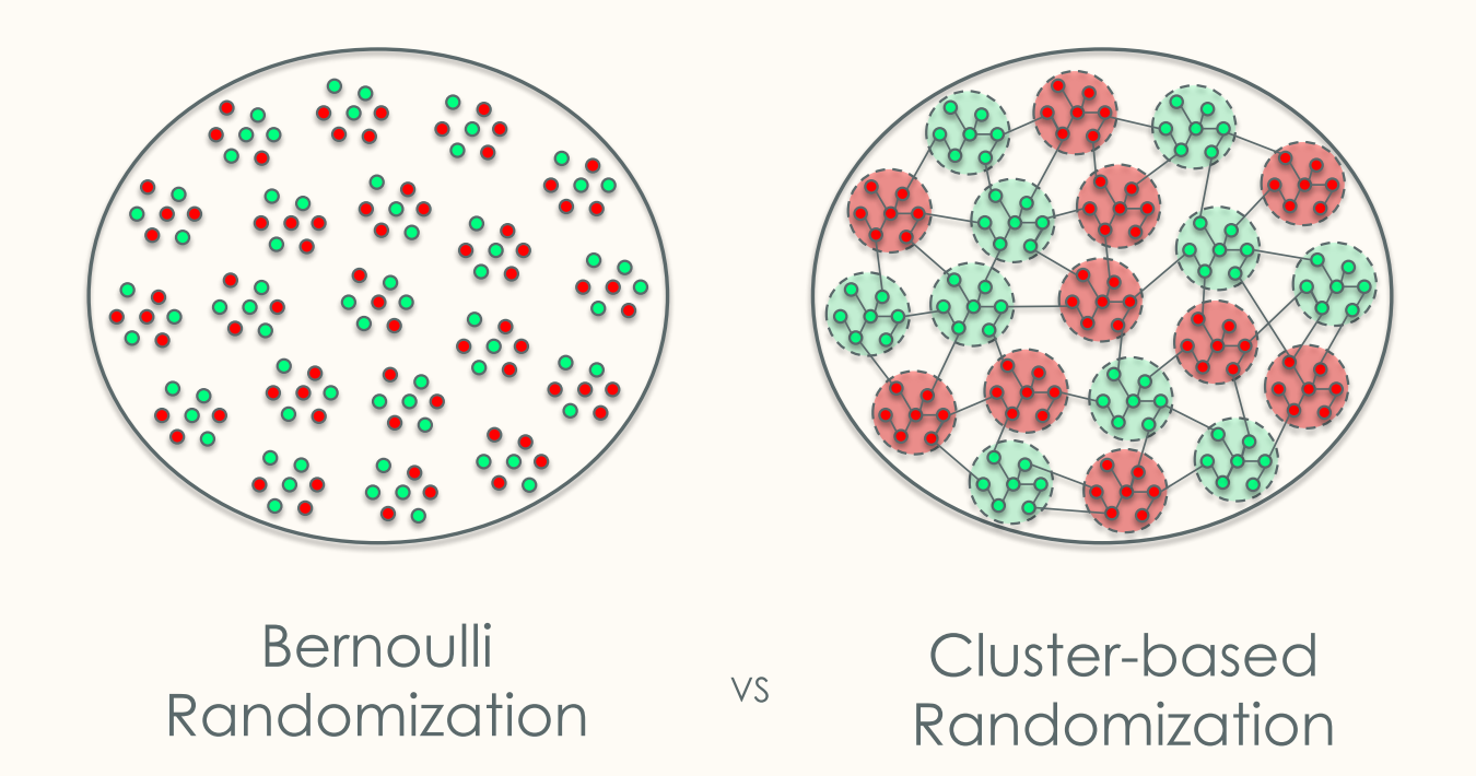 - 人群分流只能缓解一部分的相互影响,在上图中也可以看到,cluster之间实际上也还是存在联系的。因此转变思路,不再考虑如何规避网络效应,而是允许它存在并衡量出来。