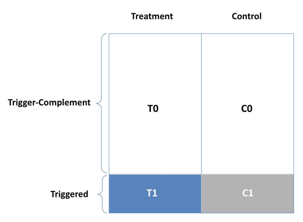 - 样本选择:观测triggered用户从第一次被trigger后,在实验周期内所有事件;